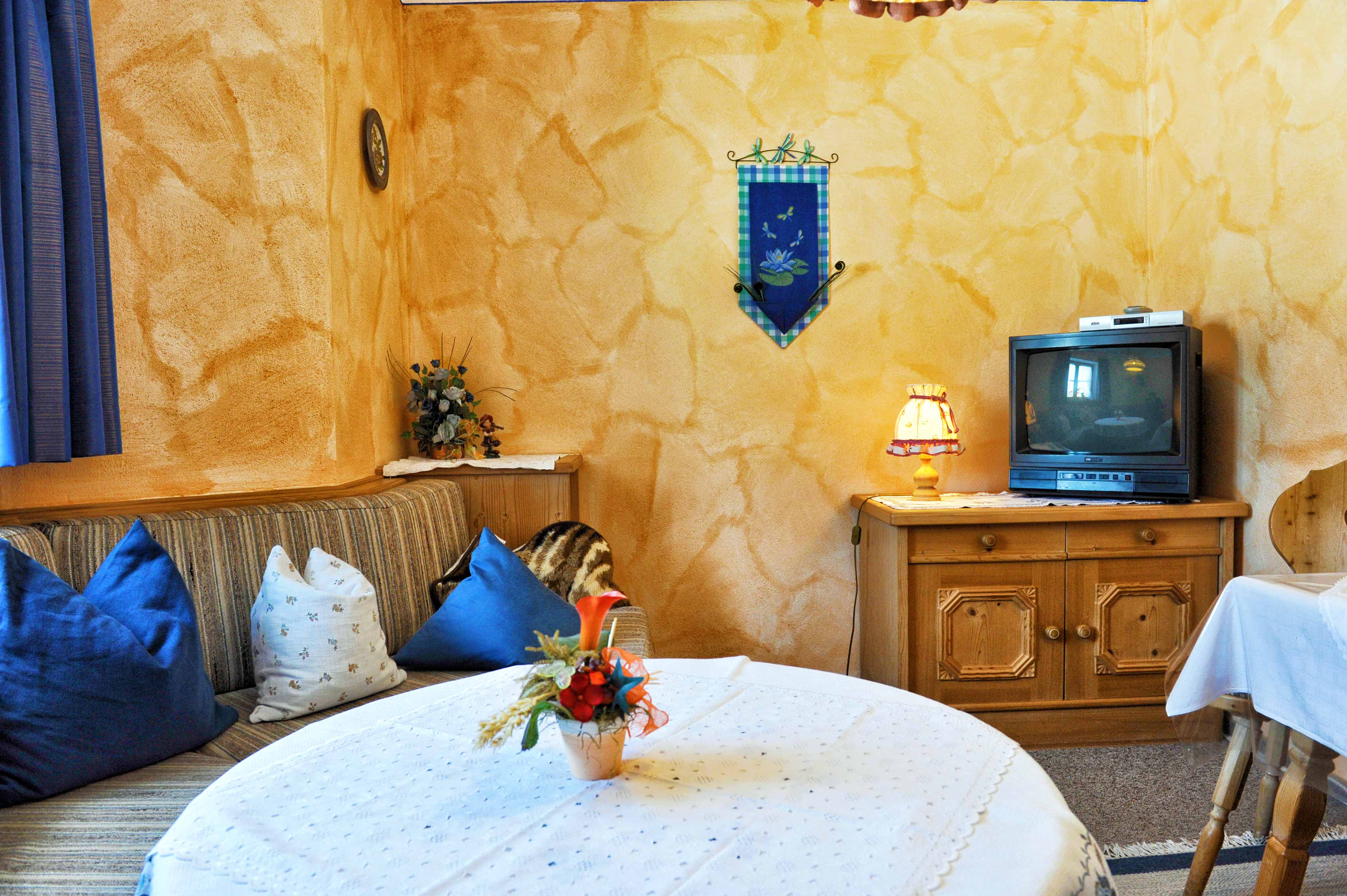 | Die Ferienwohnung Soiern ist eine kleine aber feine Wohnung. Im Wohnraum lädt eine gemütliche Sitzgruppe, zum verweilen ein. Der große LCD-Full-HD Fernseher lässt keine Wünsche offen. Auch für ausreichende Beleuchtung ist gesorgt, ebenfalls steht eine kleine Auswahl an Bücher und Spielen zur Verfügung. Für ein strahlenfreies LAN-Internet stellen wir Ihnen ein Kabel zur Verfügung. Aus der Info-Mappe können Sie sich über alles Wissenswerte über die Umgebung (inklusive Wandertipps) und dem Haus informieren. Ebenfalls steht eine große Auswahl an Wander – und Radkarten zur Verfügung. |
