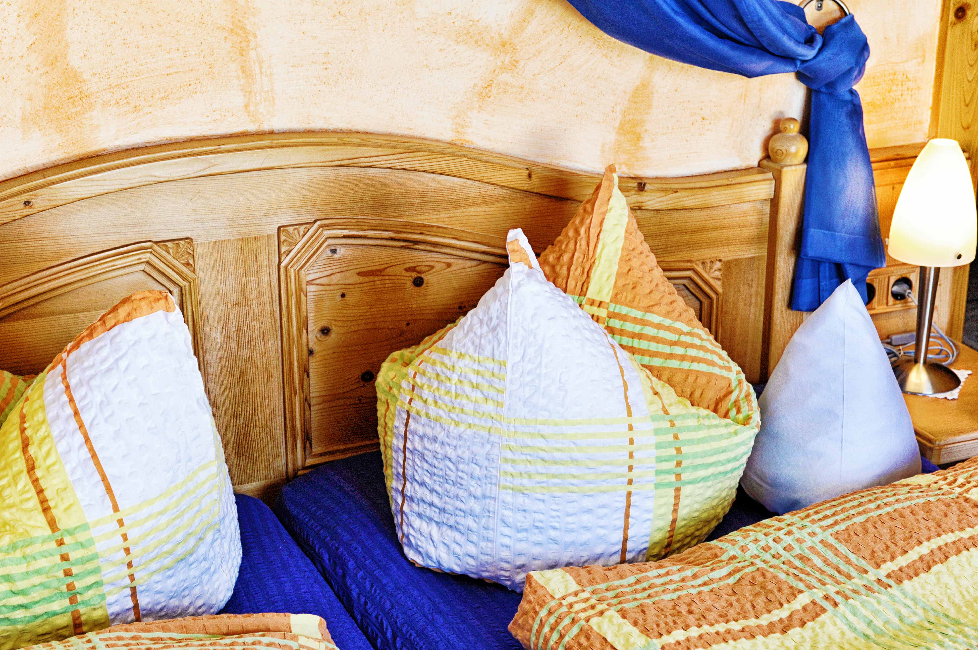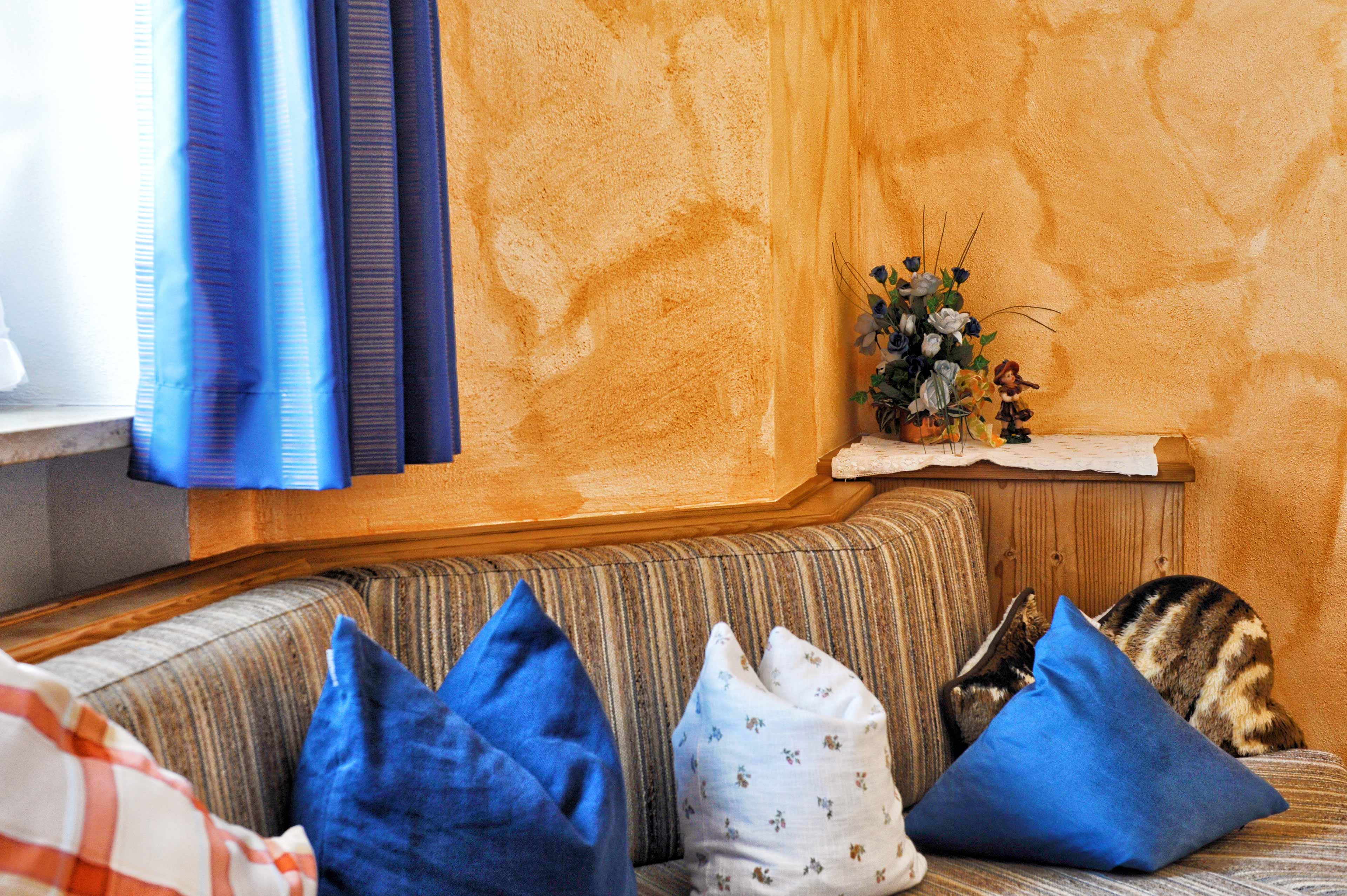 Die Ferienwohnung Soiern befindet sich im Erdgeschoss und hat direkten Zugang zu Garten und Liegewiese. Auf der Terasse vor der Wohnung können Sie ganztags Sonne genießen. Das Schlafzimmer ist im alpenländischen Stil mit einem großen Schrank und Kofferbock ausgestattet. Die Betten haben verstellbare Lattenroste, Federkernmatratzen und Daunendecken. Bettwäsche und Handtücher werden Ihnen selbstverständlich bereitgestellt.